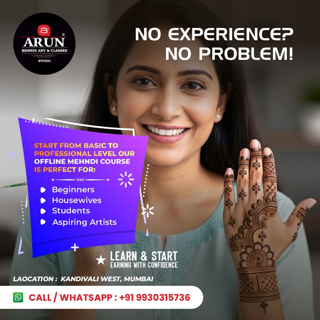 "Arun Sir's teaching method is so simple. I never thought I could draw portraits, but today I'm a specialist in figurine mehndi."